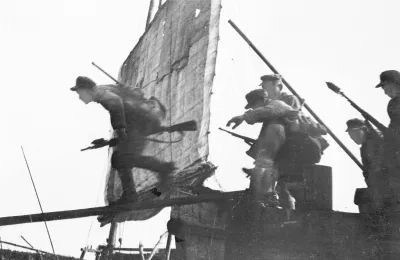 百萬雄師下江南(1949年紀錄片):勝利的旗幟插在長江南岸了,中國人民的百萬大軍完成了歷史上空前的雄偉壯舉,勝利地向江南地區前進,這是戰爭史上的奇跡,但也只有偉大的人民力量才能夠創造出這樣偉大的奇跡來。